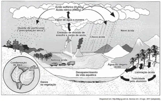 No esquema, o problema atmosférico relacionado ao ciclo da água acentuou-se após as revoluções industriais. Uma consequência direta desse problema está na:
