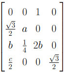 O conjunto solução S contendo os valores de a, b e c para que a matriz seja ortogonal é: