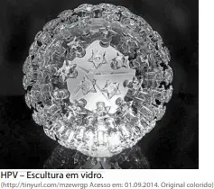 Entre essas esculturas, destaca-se a do papilomavírus humano (HPV), nome genérico de um grupo de vírus que engloba mais de cem tipos diferentes, cuja principal forma de transmissão é a sexual.
