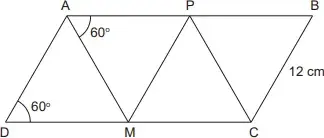 ABCD é um paralelogramo que possui ângulos agudos de 60° e cujo menor lado mede 12cm. Os pontos M e P são, respectivamente, pontos médios dos lados CD e AB. O ângulo MÂP mede 60°.