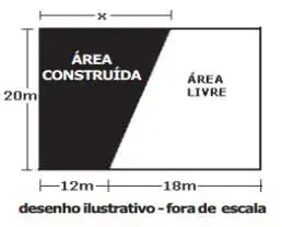 7. (EsPCEx) As regras que normatizam as construções em um condomínio definem que a área construída não deve ser inferior a 40% da área do lote e nem superior a 60% desta. O proprietário de um lote retangular pretende construir um imóvel de formato trapezoidal, conforme indicado na figura.