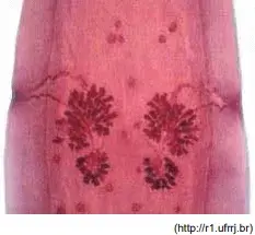 10. (UEA) A fotomicroscopia mostra uma proglote de uma tênia, um verme hermafrodita.
