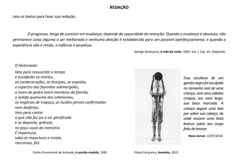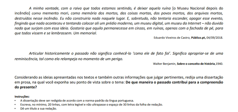 Considerando as ideias apresentadas nos textos e também outras informações que julgar pertinentes, redija uma dissertação em prosa, na qual você exponha seu ponto de vista sobre o tema: De que maneira o passado contribui para a compreensão do presente?