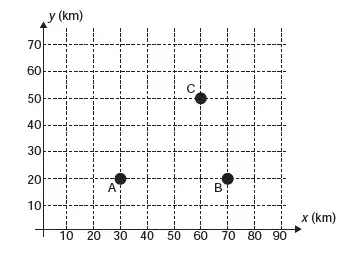 03. (Enem 2013) Nos últimos anos, a televisão tem passado por uma verdadeira revolução, em termos de qualidade de imagem, som e interatividade com o telespectador. Essa transformação se deve à conversão do sinal analógico para o sinal digital. Entretanto, muitas cidades ainda não contam com essa nova tecnologia. Buscando levar esses benefícios a três cidades, uma emissora de televisão pretende construir uma nova torre de transmissão, que envie sinal às antenas A, B e C, já existentes nessas cidades. As localizações das antenas estão representadas no plano cartesiano:
