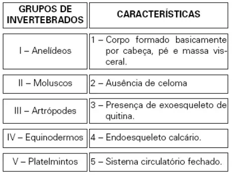 3. (Unesp) Analise os grupos de invertebrados apresentados a seguir e as características descritas.