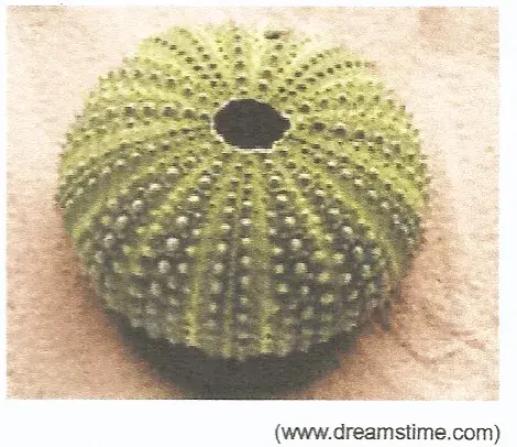 - o endoesqueleto calcário de um equinodermo.