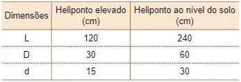 01. (UNESP) O indicador de direção do vento, também conhecido como biruta, é item obrigatório em todo heliponto. Suas dimensões devem estar em conformidade com a figura e com a tabela apresentadas na sequência, retiradas do Regulamento Brasileiro da Aviação Civil.