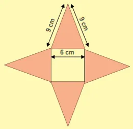 03. (UPE) Quanto mede o volume da pirâmide regular de base quadrada cuja planificação está representada na figura a seguir?