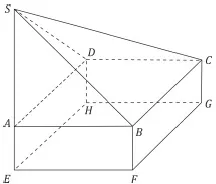 04. (UNESP) A figura indica o projeto de uma escultura maciça em forma de pirâmide de vértice V, base ABCDEFGH e altura VH, que será feita com espuma expansiva rígida de poliuretano. Sabe-se que AHGF é um quadrado de área igual a 3 m², BCDE é um retângulo, com BC = 3 m e CD = 4, e que o ângulo HGV mede 60º.