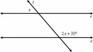 2. (FAM–SP) Dadas às retas r e s, paralelas entre si, e t, concorrente com r e s, calcule o valor de x: