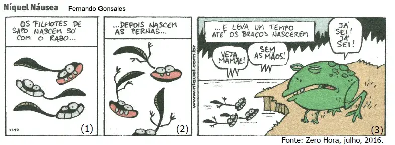 - a ordem de surgimento dos membros posteriores e anteriores, ilustrada na tira, está invertida.