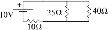 A corrente elétrica no resistor de 10Ω e a tensão no resistor de 25Ω valem, respectivamente: