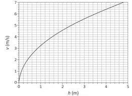 19. (Fuvest 2018) Ondas na superfície de líquidos têm velocidades que dependem da profundidade do líquido e da aceleração da gravidade, desde que se propaguem em águas rasas. O gráfico representa o módulo v da velocidade da onda em função da profundidade h da água.