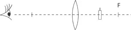 Considere que a vela está posicionada entre a lente e o seu ponto focal F. Nesta condição, a imagem observada pela pessoa é